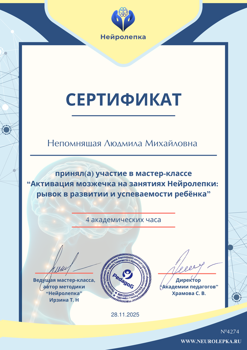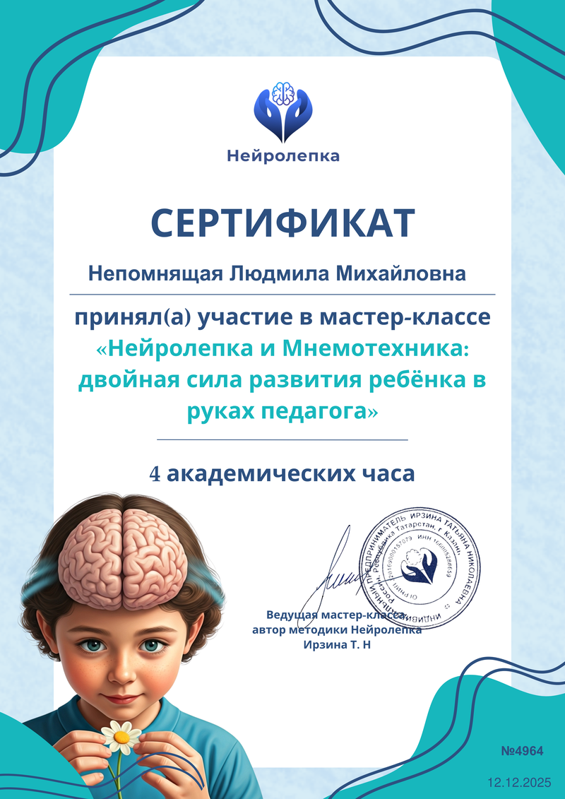 сертификат "Нейролепка и мнемотехника" 12.12.2025